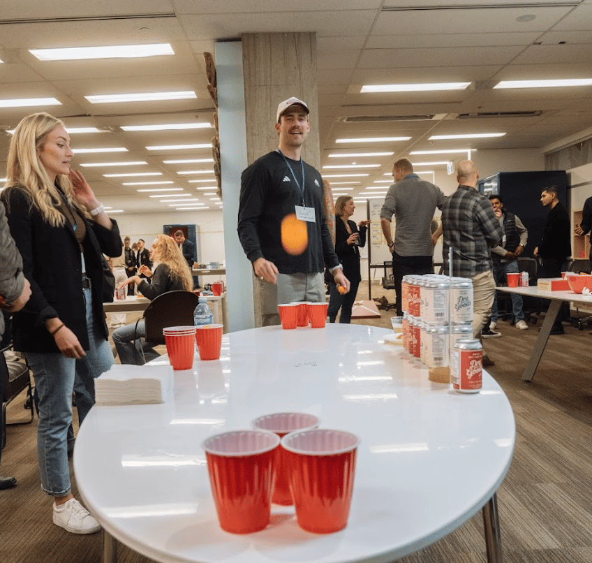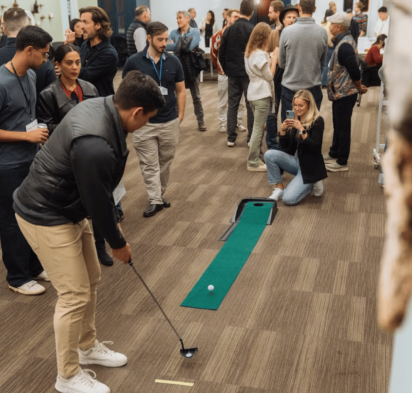 ☑️ We played beer pong, corn hole, mini-putt and gave away door prizes